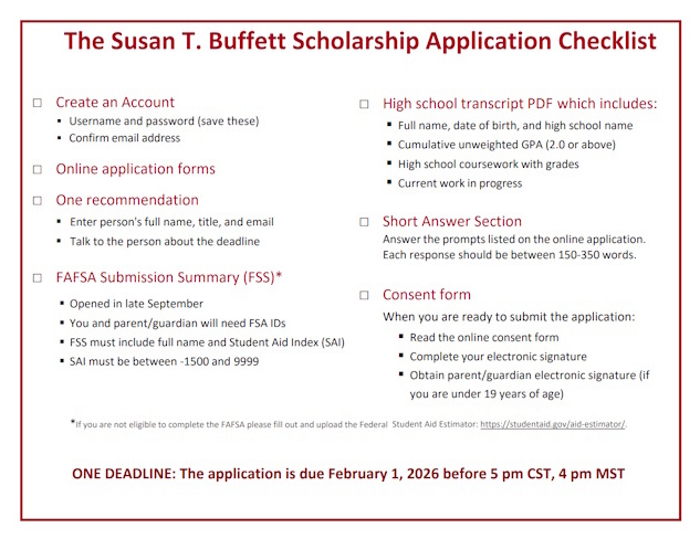 The 2026 application deadline is February 1, 2026 before 5 pm CST/4 pm MST.
